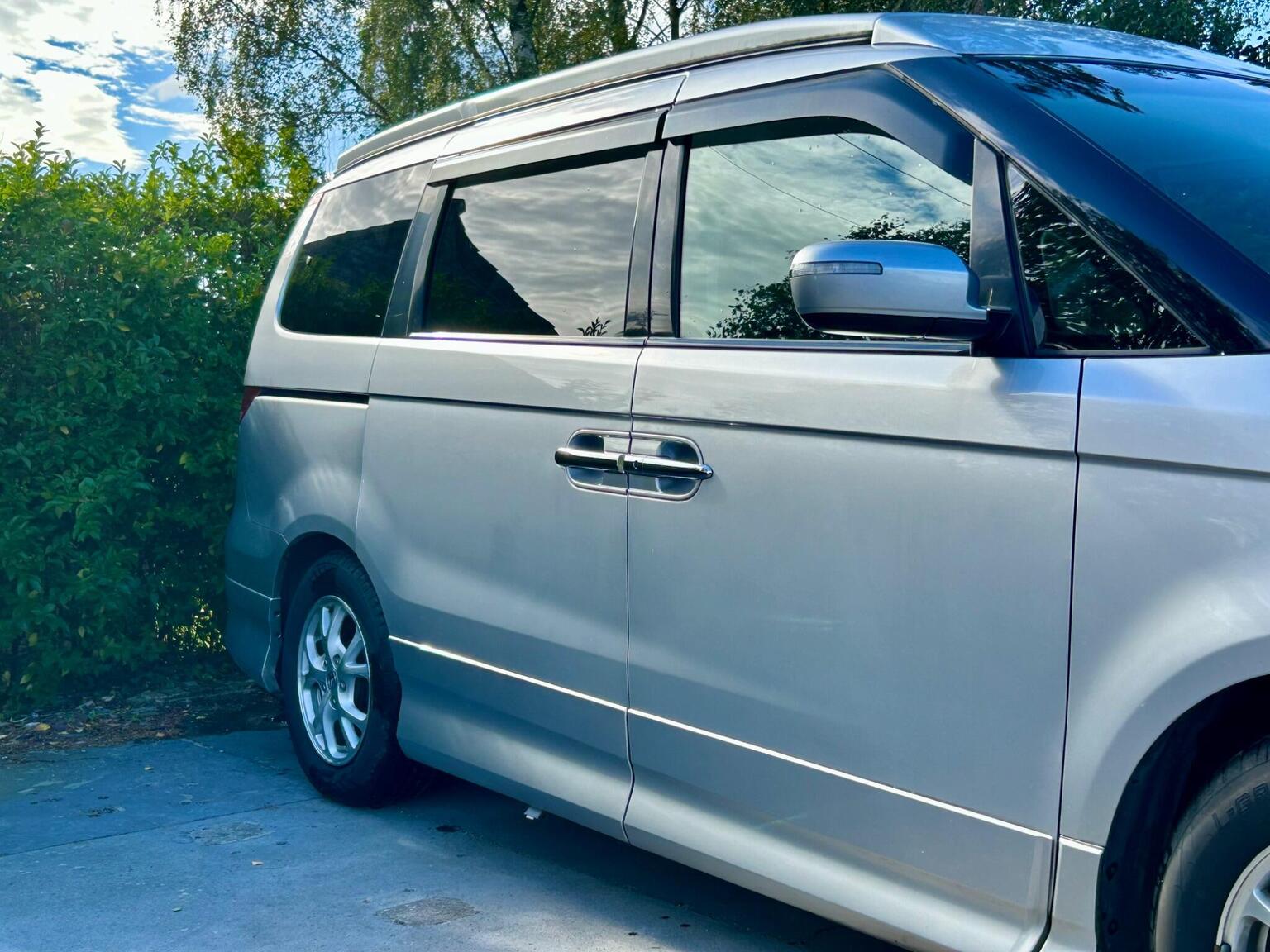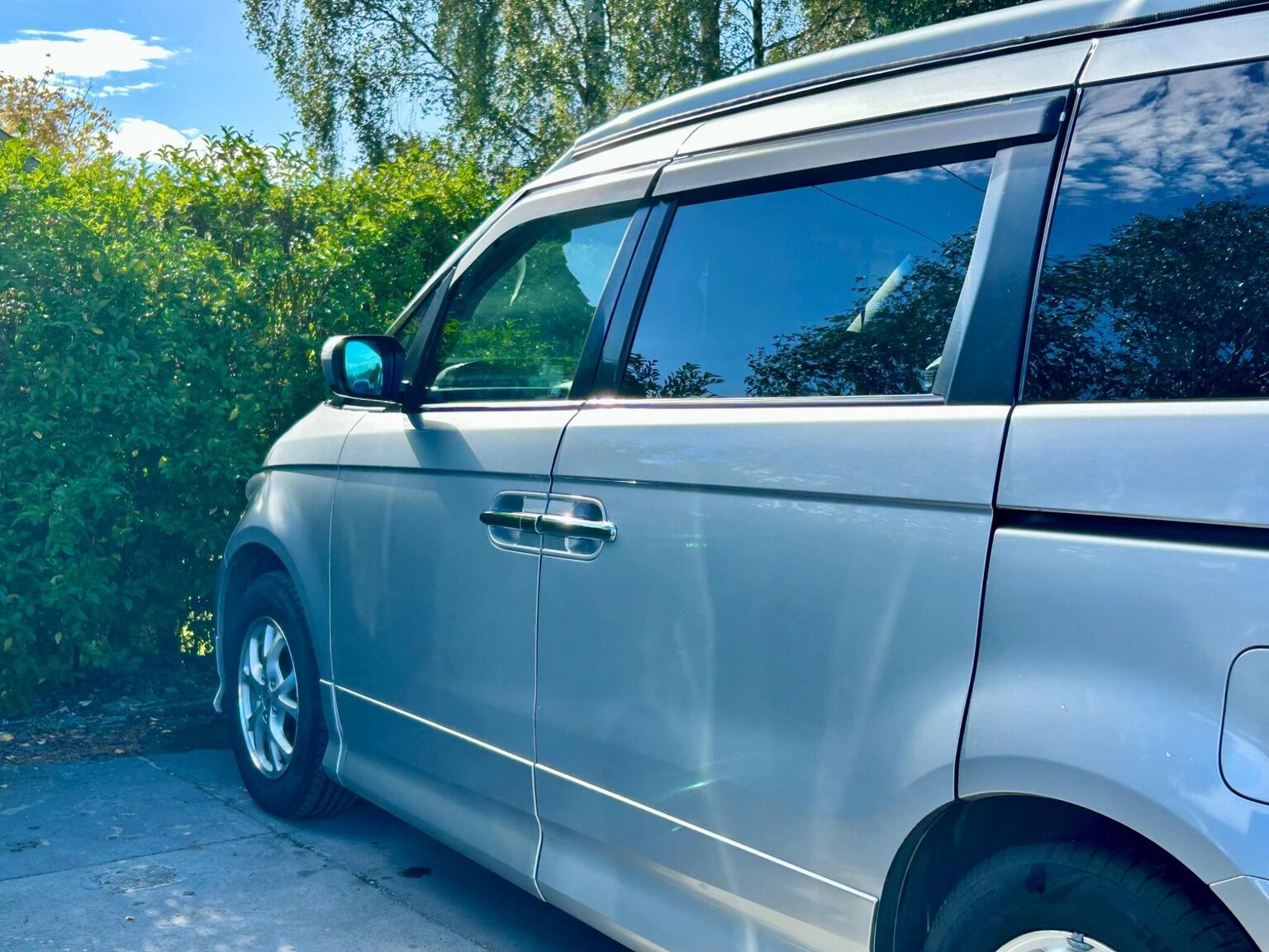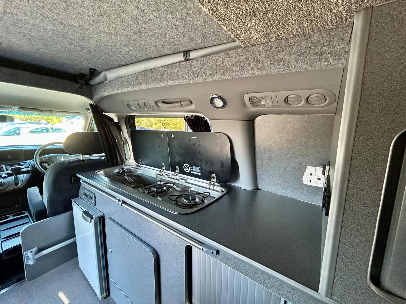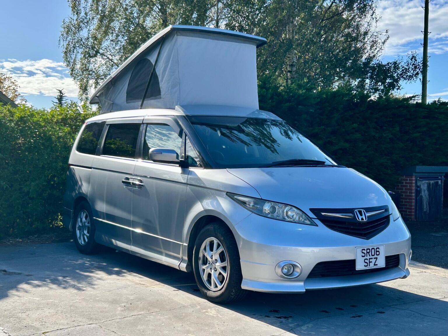 Fantastic condition well cared for Honda Elysion, Converted in 2022 by Fantastic Campervans. Camper features: Pop-Top with plasticised tenting and zipped side windows with integral fly screens, LED lighting to pop-top, Rotating passenger seat, Leisure battery with relay charging, Sargent AC50 electrical control panel, 12V fridge with freezer section, Dometic dual burner and sink with glazed covers, Rock 'n' roll pull out bed fitted with dual seatbelts for two passengers, Electric hook-up point with circuit breaker distribution box, 12V and USB switched distribution unit, LED Lighting to lounge area, Water pump system and 20 litre water container, Steel Calor gas container safety compartment, Rail detachable table, Multi purpose lockers and shelves.