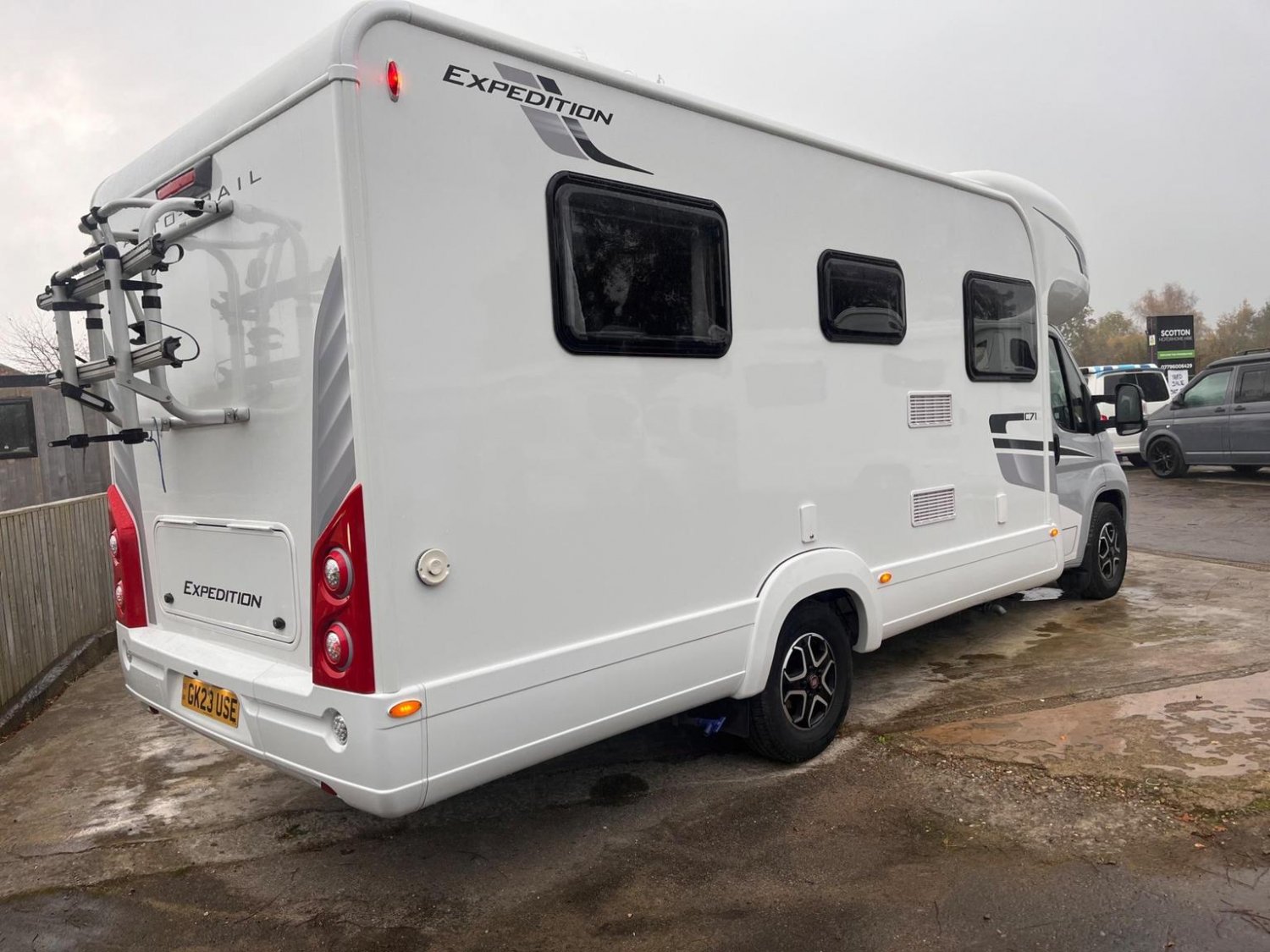 Abundant storage space is provided by dual wardrobes, overhead lockers, and a rear storage compartment with external access. The Expedition C71 also boasts a relaxing front lounge with swivelling cab chairs.