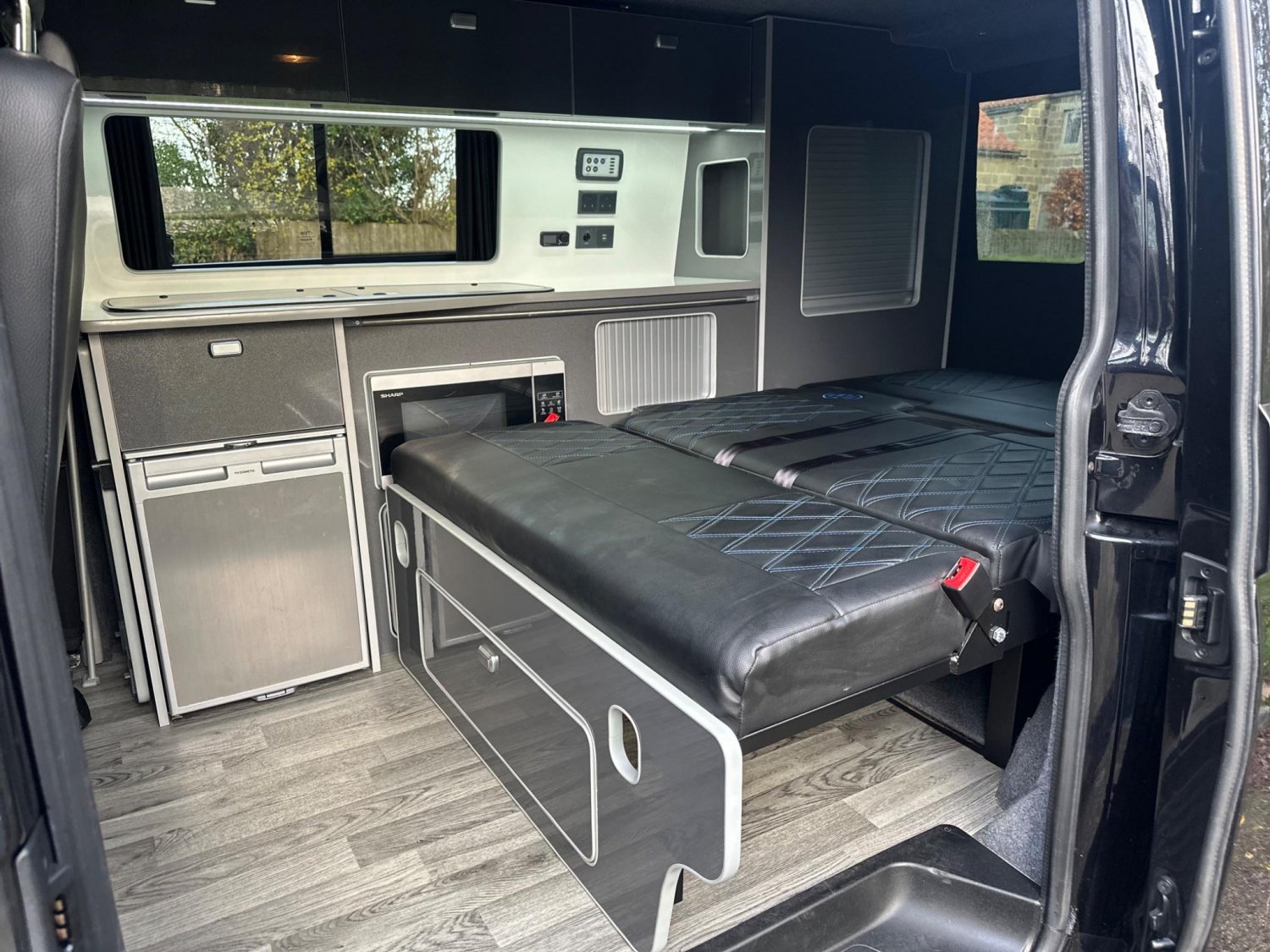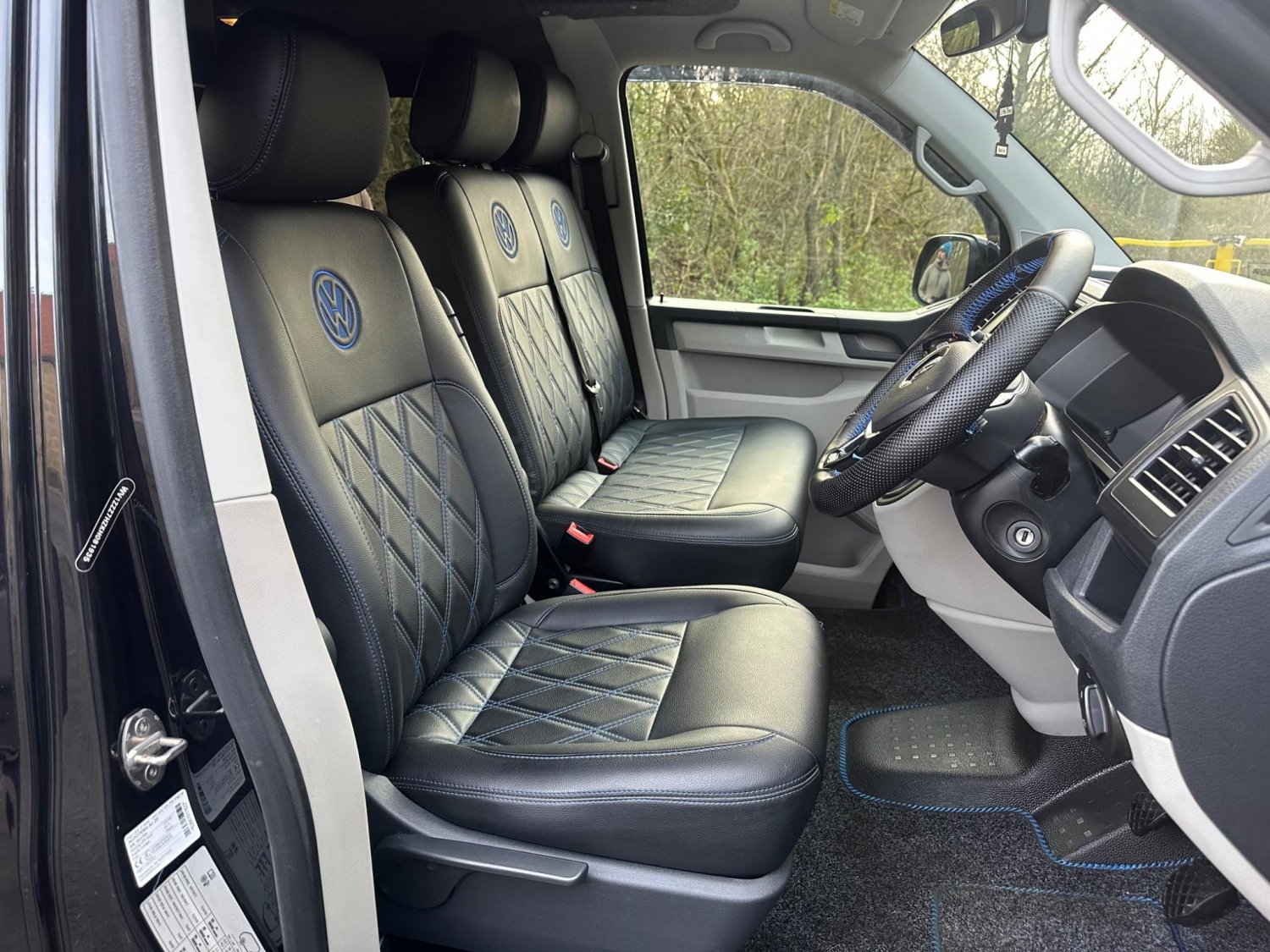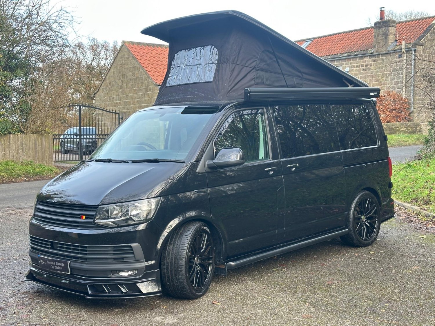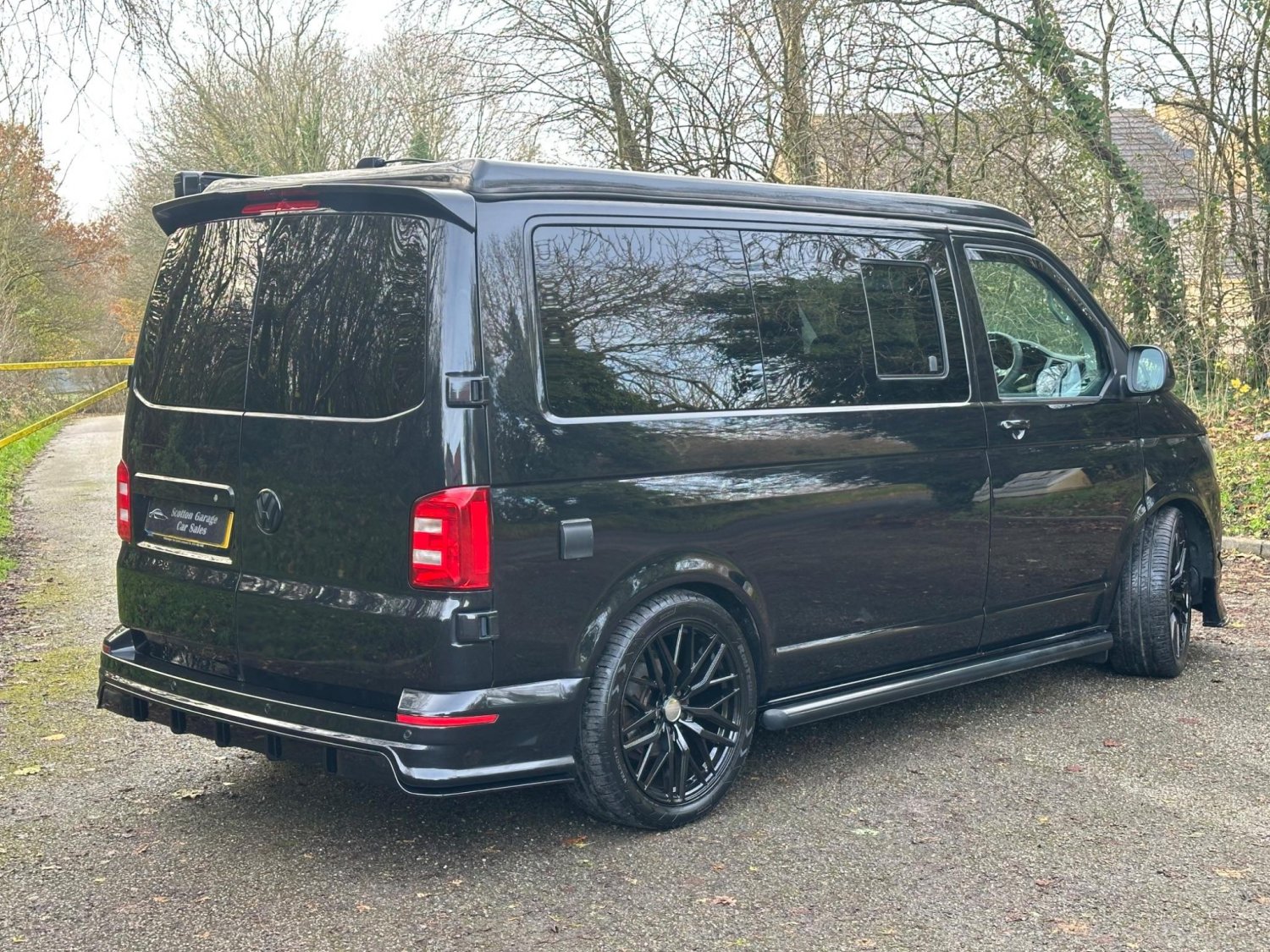 fantastic looking hi line T28 conversion by big wave campers , fitted solar panel , diesel healter , uorated wheels , front spoiler rear roof spoiler , privacy glass , full leather interior , roc and roll bed , pop top roof .