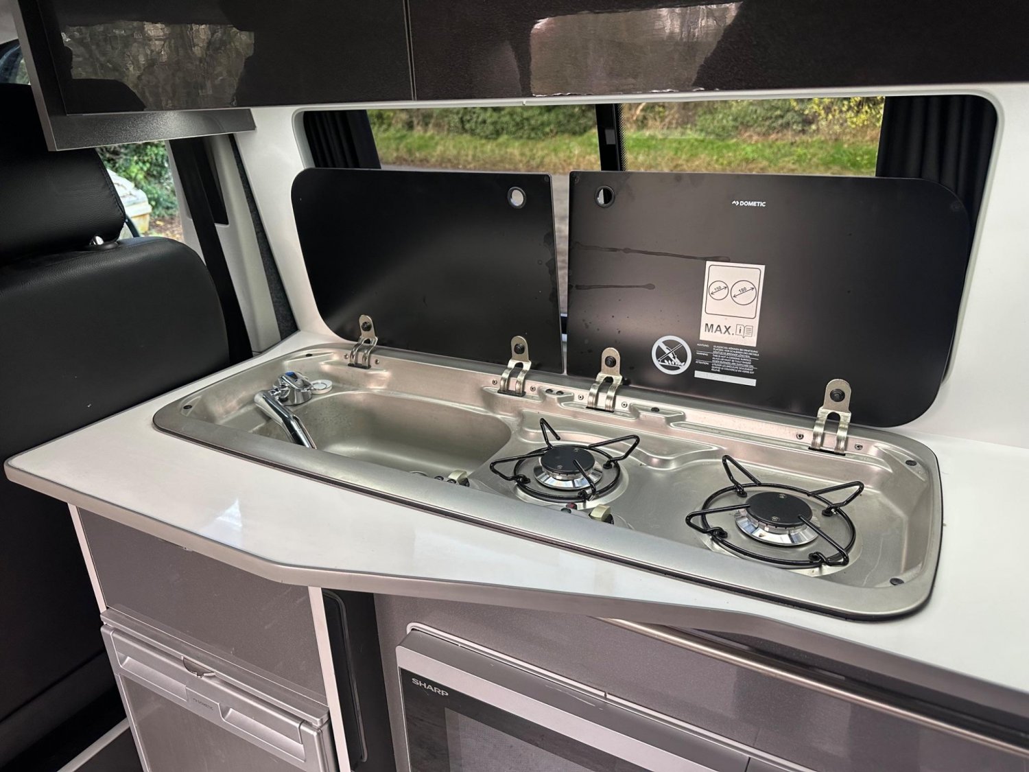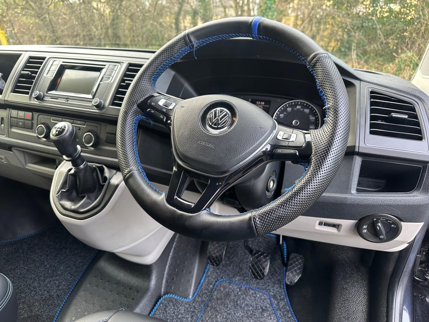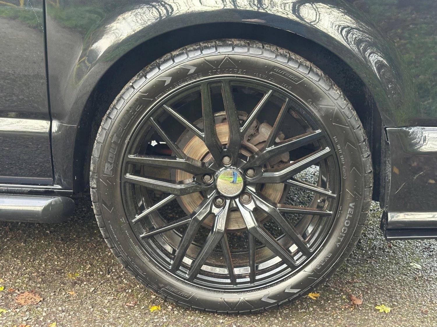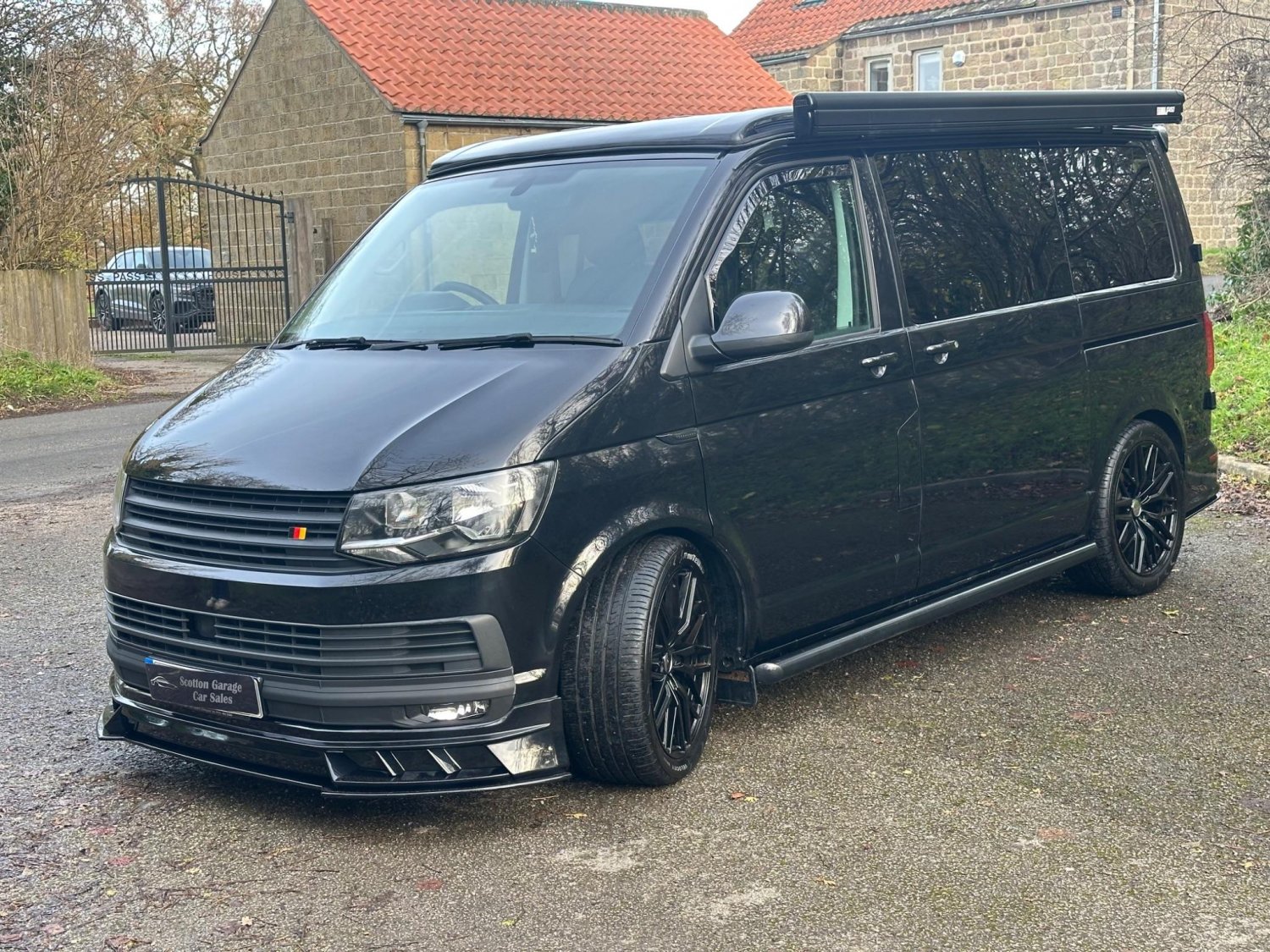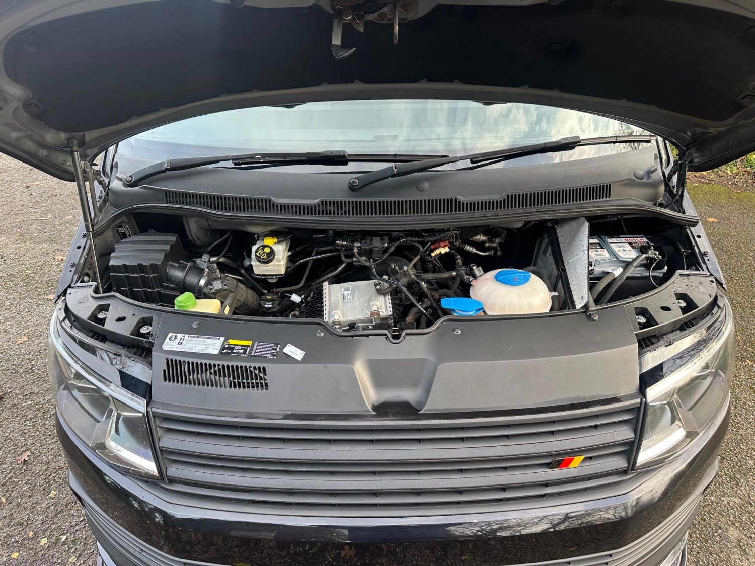 fantastic looking hi line T28 conversion by big wave campers , fitted solar panel , diesel healter , uorated wheels , front spoiler rear roof spoiler , privacy glass , full leather interior , roc and roll bed , pop top roof .